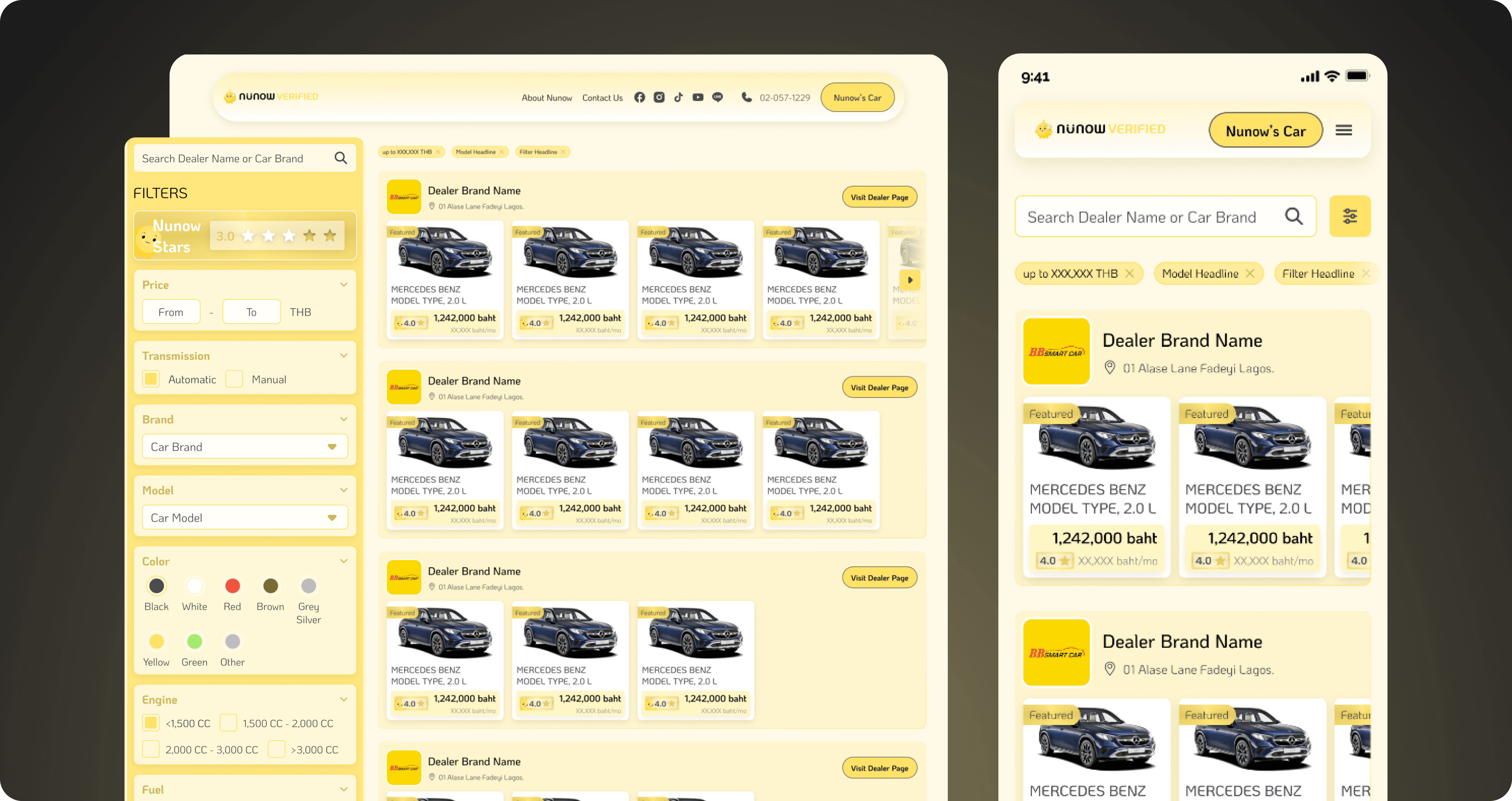 • Dealer Catalogue: Curated list with ratings, offers, and advanced filtering
