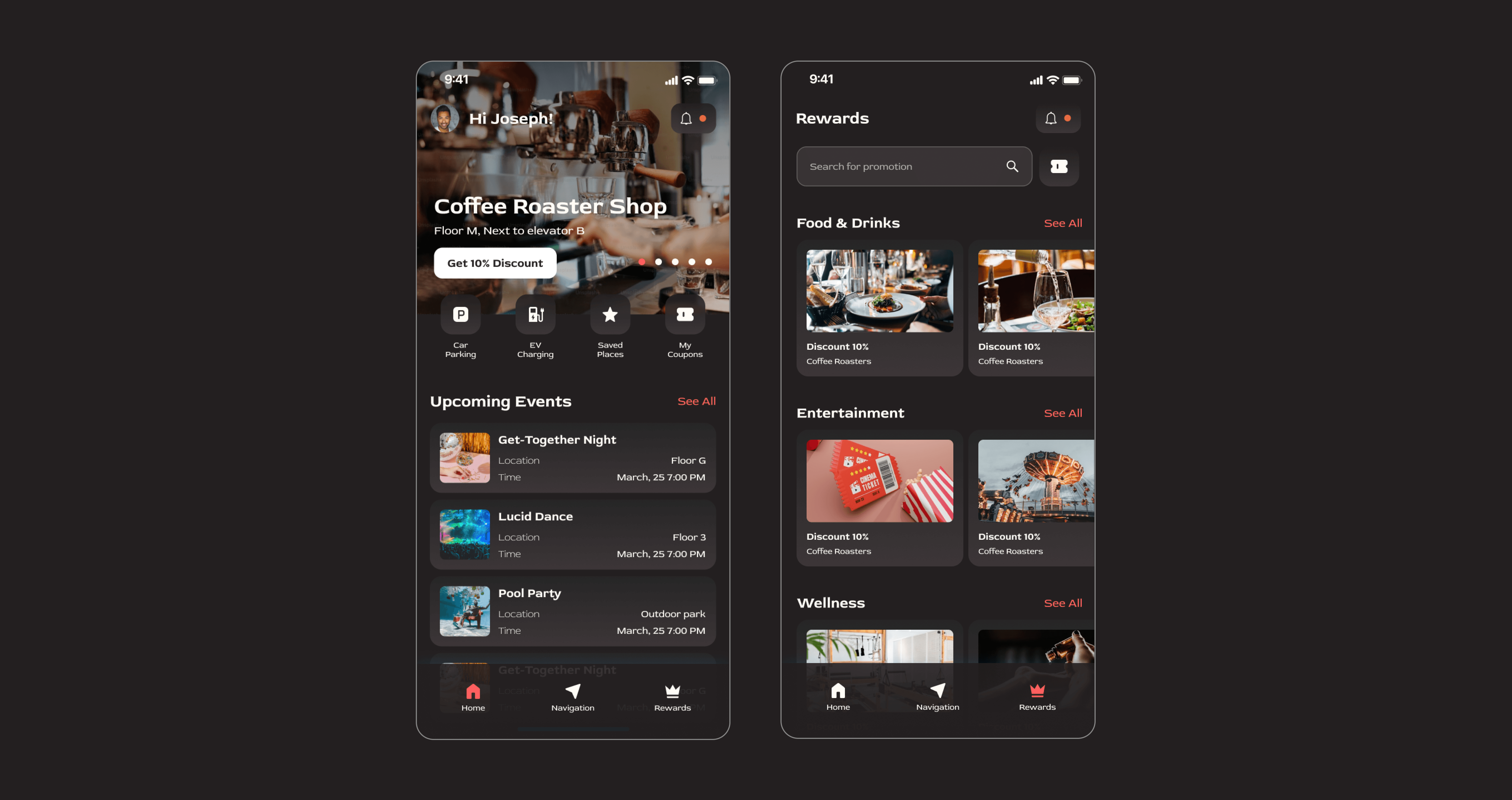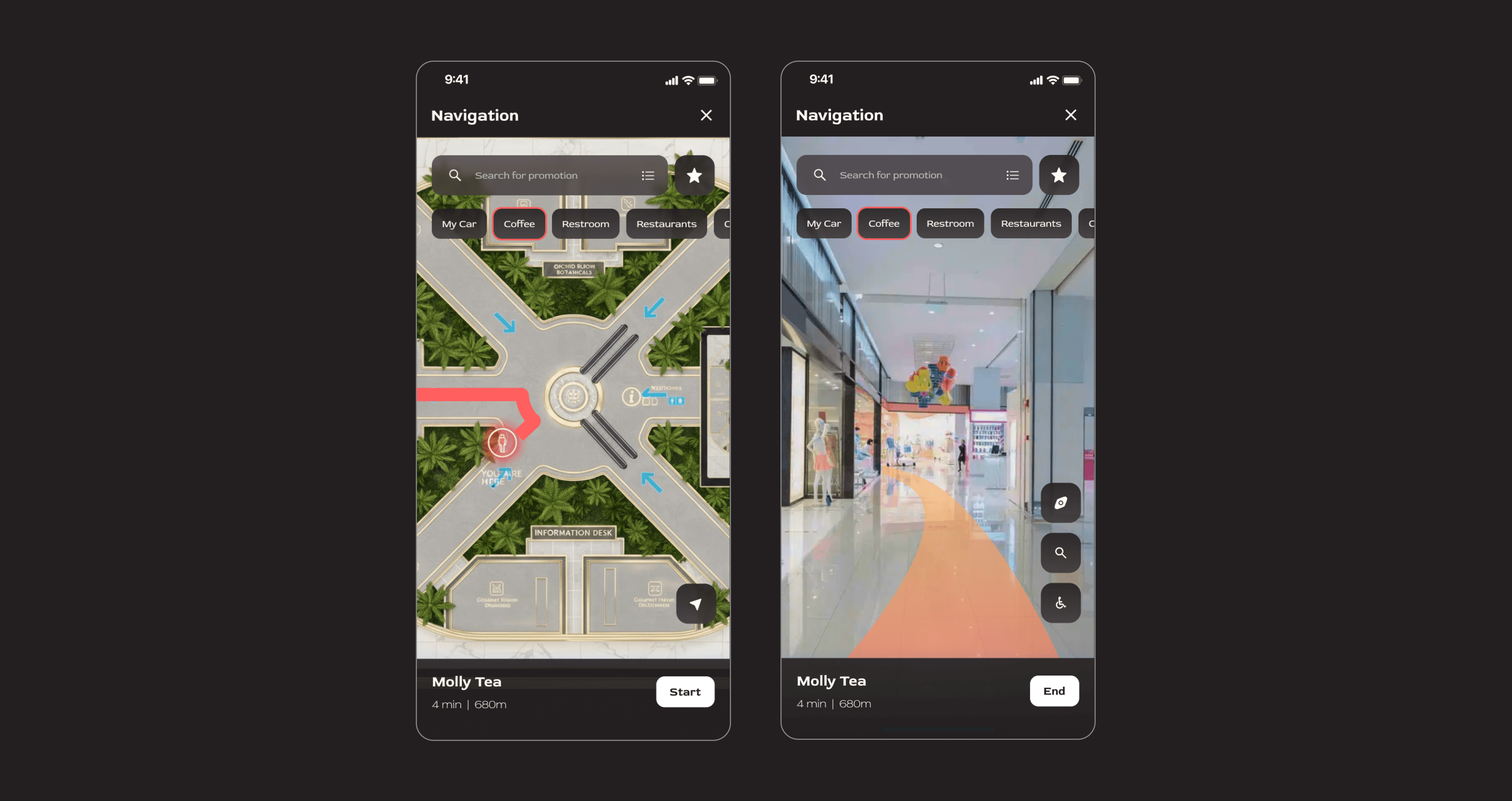 We created an app covering event schedules, reward catalogues, and navigation features using space scan technology and wayfinding overlays.